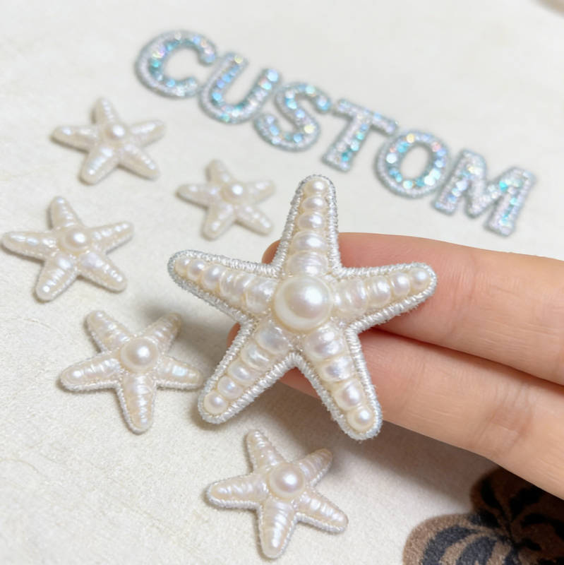 Toppe Personalizzate con Logo Ricamato in Strass Luccicanti e Perline Glitterate Argento per Cappelli, Abbigliamento, Scarpe e Borse