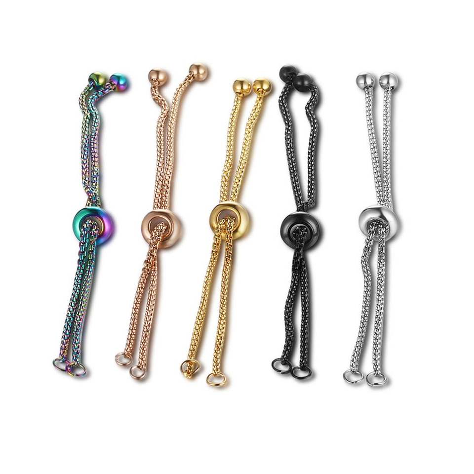 Bracciale regolabile personalizzato argento/oro/Ros oro/nero/arcobaleno bracciale regolabile in acciaio inossidabile 316L con perline