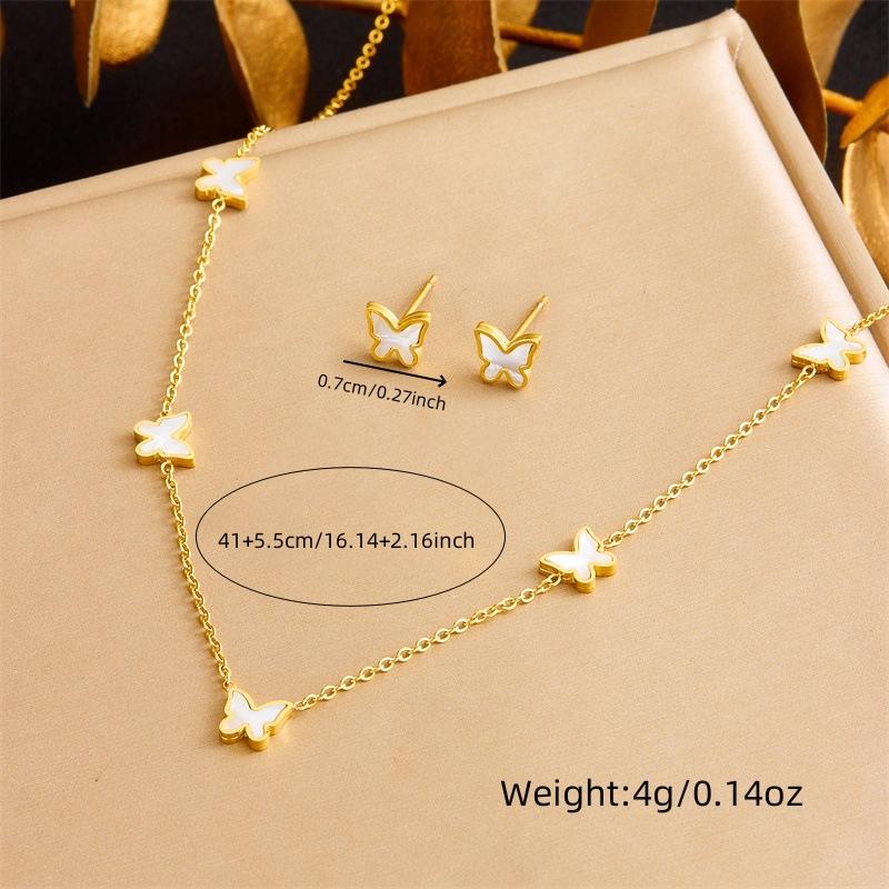 Custom semplice piatto d'oro 18K in acciaio inossidabile perla farfalla guscio di gioielli in stile coreano classico orecchino collana