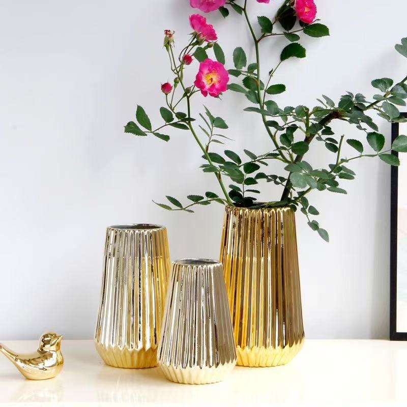 Vaso in ceramica dorata semplice stile nordico personalizzato moderno decorazione per la casa vaso rilievo composizioni floreali