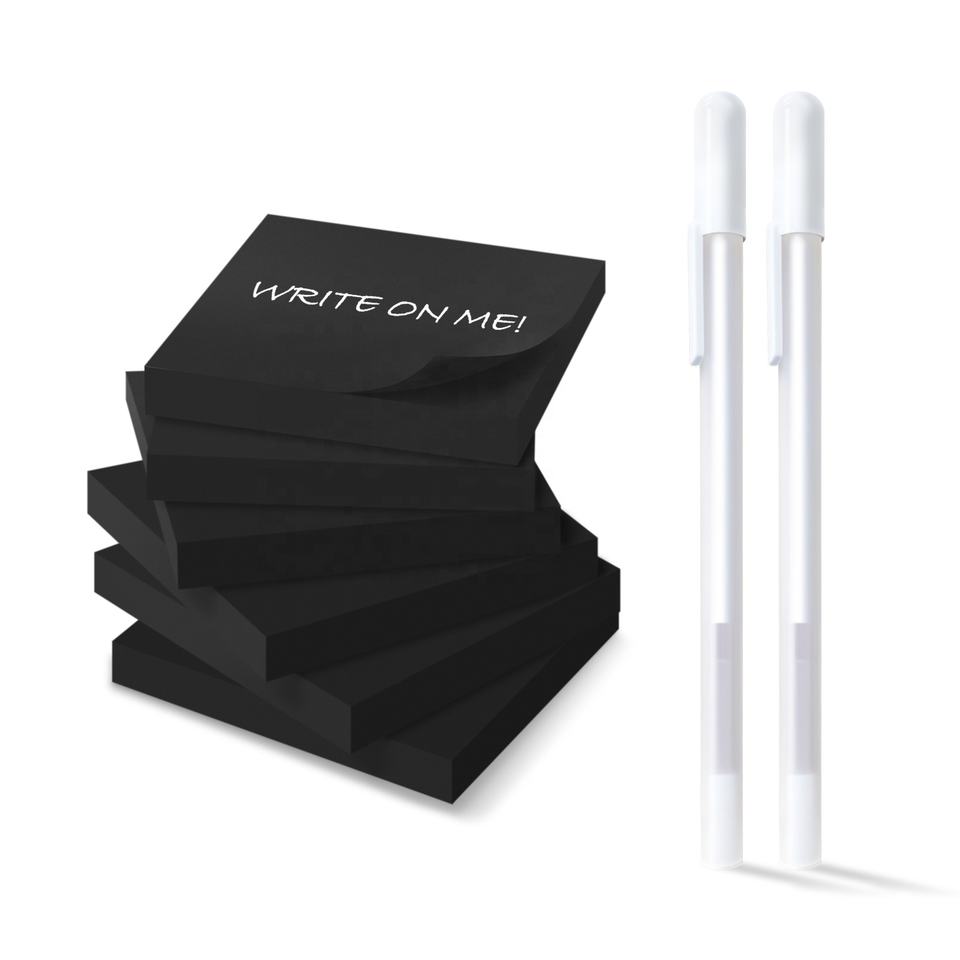 Semplicità personalizzata colore nero confezione da 6 Note simpatico blocco Note appiccicoso personalizzato 480 fogli Note adesive con penna In stock