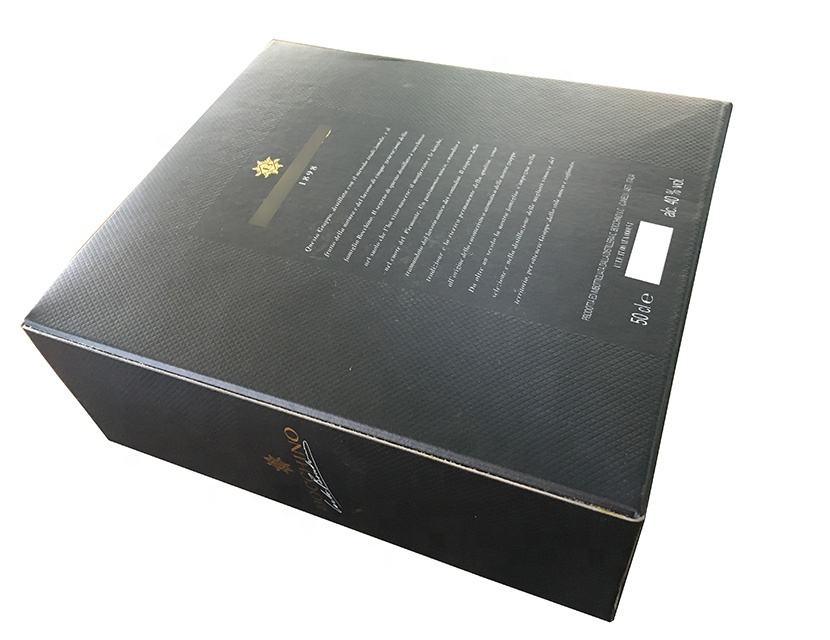 Custom Single Bottle Wine Boxes Self Erecting Folding Corrugated Recyclable Rich Black Printing Luxury Whisky Soda Energy Drinks
