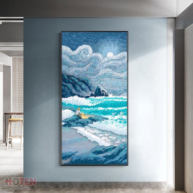 Murale dipinto a mano Post-moderno paesaggio balneare ispirato a Van Gogh su misura di arte della parete di dimensioni astratte per hotel