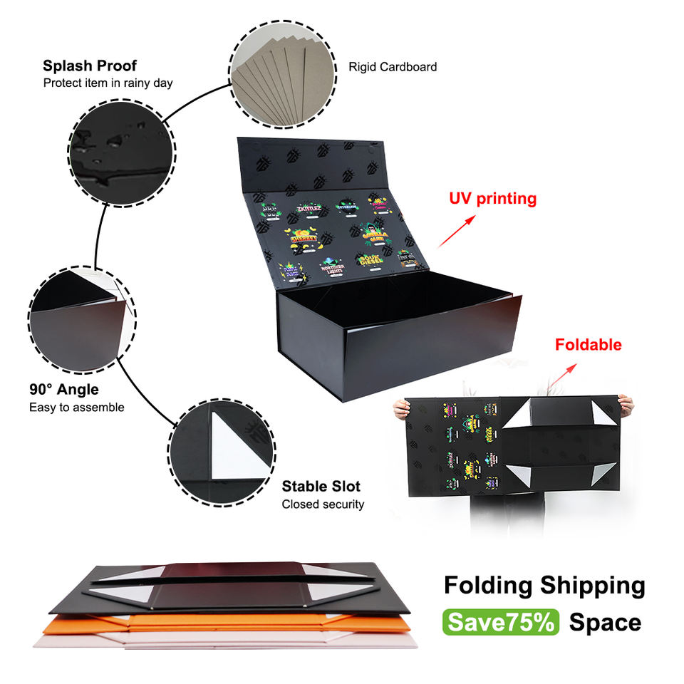 Scatola Regalo Magnetica Pieghevole Nera Grande su Misura, Confezione di Lusso in Cartone Rigido per Abiti, Vestiti e Abiti da Sposa