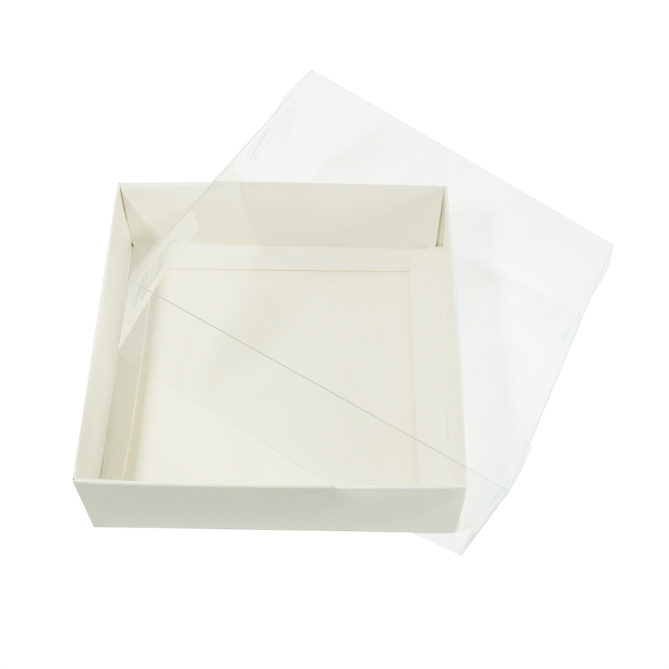 Scatola Regalo Bianca Pieghevole Personalizzabile con Coperchio Trasparente in Plastica per Fiori, Vestiti, Prodotti da Forno, Dolci e Dessert