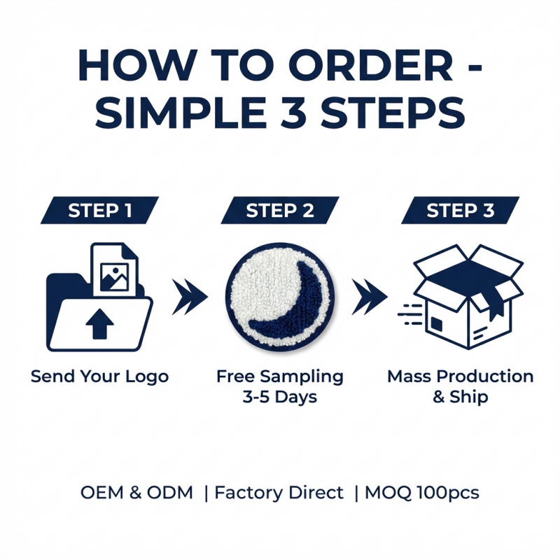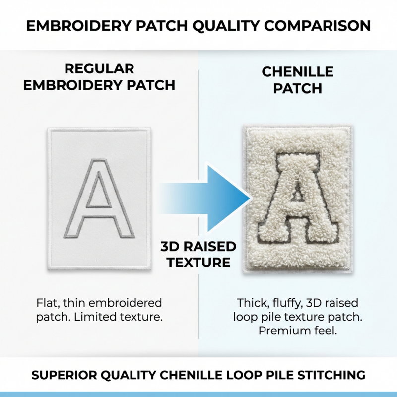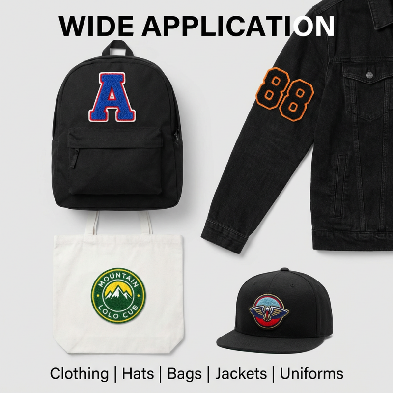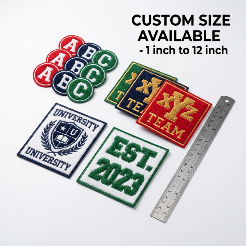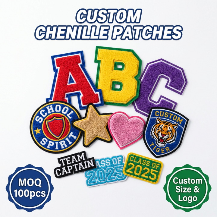 Toppe in ciniglia personalizzate all'ingrosso, termoadesive, con logo a lettere ricamate per abbigliamento, cappelli, borse - Produzione OEM diretta dalla fabbrica, MOQ 100 pezzi