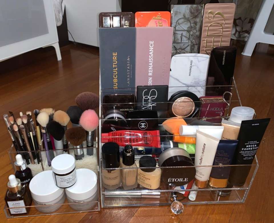 Porta cosmetici personalizzato in plexiglass con porta pennelli per trucco in acrilico trasparente