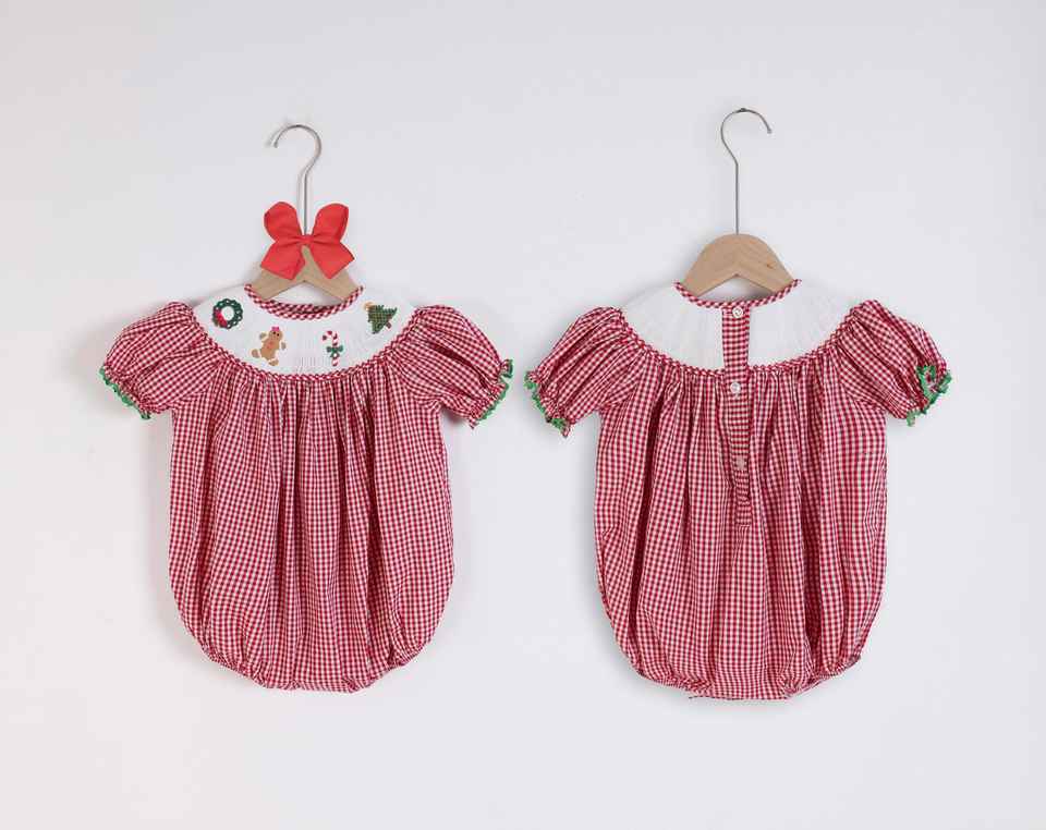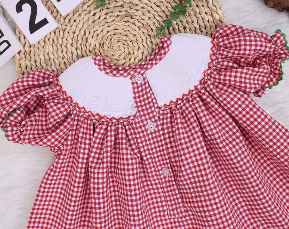 Set di pagliaccetto personalizzato per abiti natalizi con smock ricami a quadretti rossi per abbinarsi ai fratelli vestiti natalizi per bambini