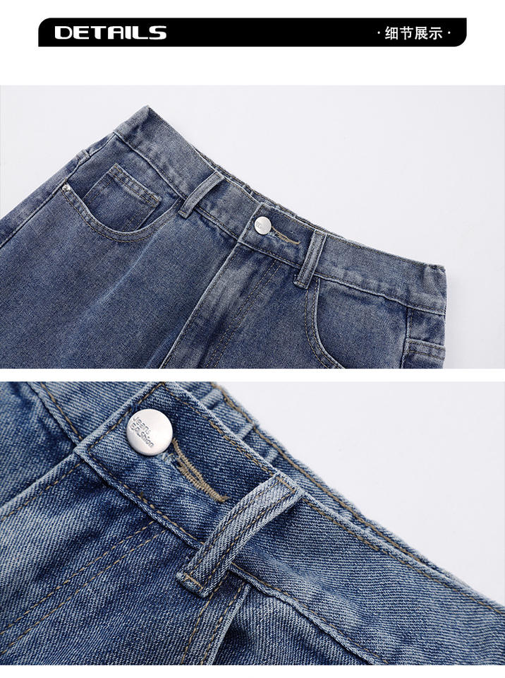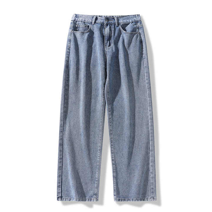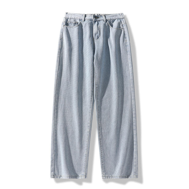 Jeans da Uomo Personalizzati Tinta Unita Colore Chiaro Vestibilità Ampia Marchio di Tendenza Pantaloni Dritti Versatili Moda Retrò Gamba Larga Stile Baggy in Denim