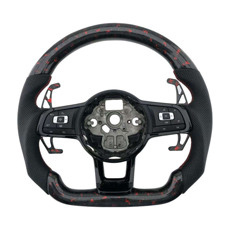 Custom Sports Style Leather Car Steering Wheel With Red Paddles for Volkswagen VW Golf MK8 TSI