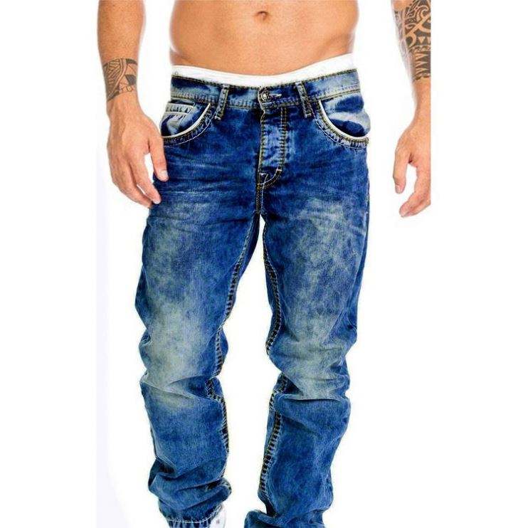 Jeans Regolari da Uomo con Design Personalizzato, Verniciatura a Spruzzo Blu, Effetto Strappato e Distrutto