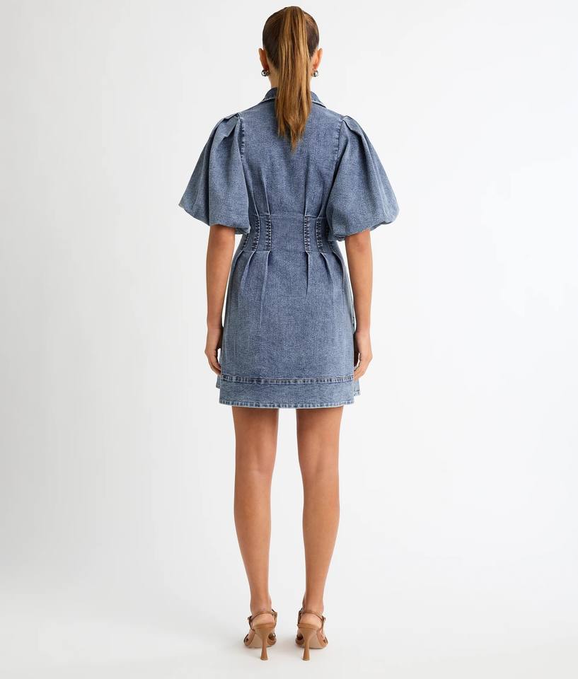 Colletto personalizzato con tasche funzionali taglio grezzo orlo blu abbigliamento da donna Denim Jeans abito