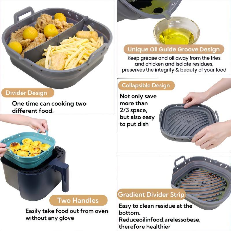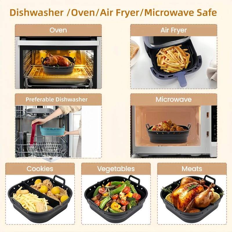 Square Reusable Collapsible Air Fryer Silicone Liners With Divider