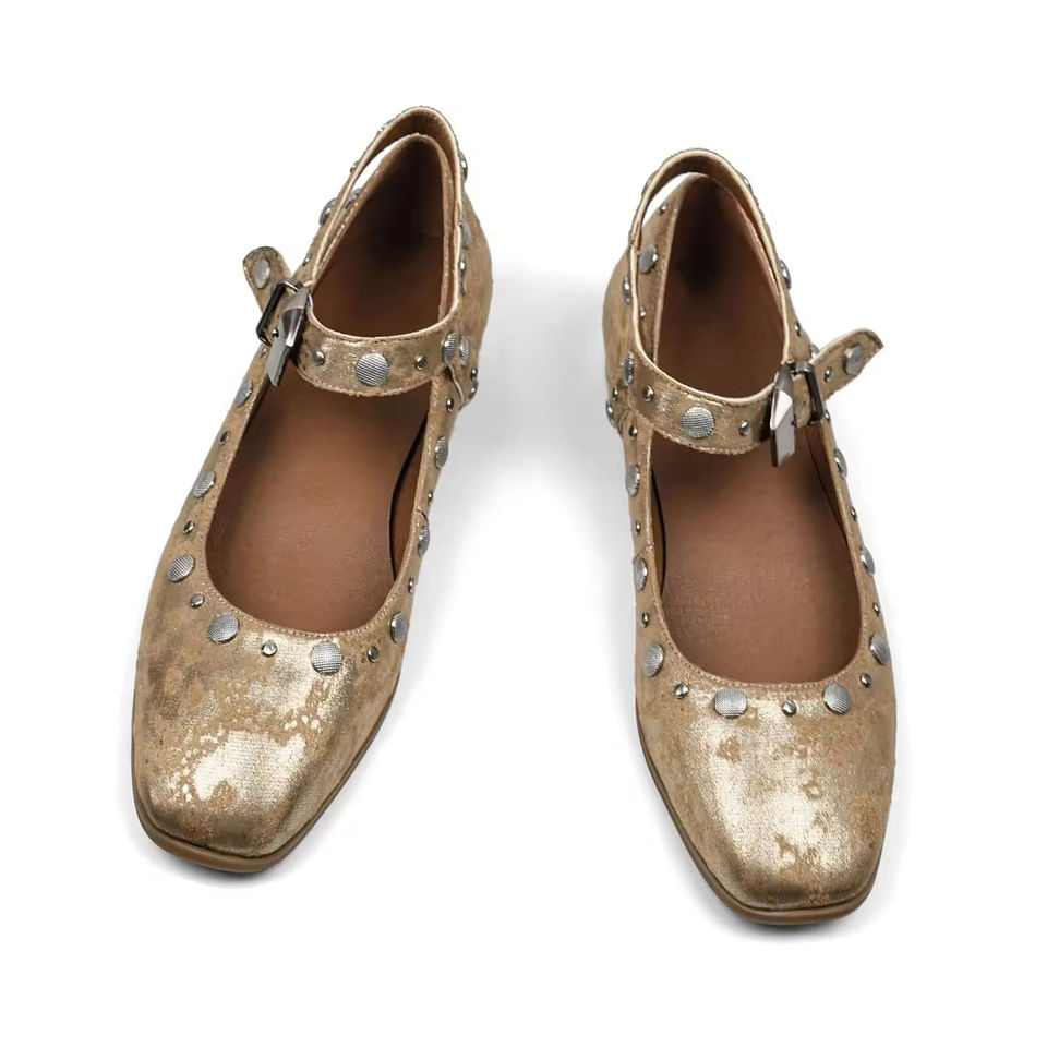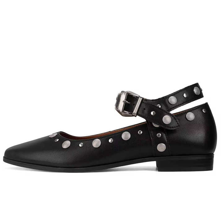 Fibbia personalizzata quadrata con punta quadrata ballerine Mary Janes ballerine con spalline eleganti tacco basso comode borchie scarpe da Ballerina