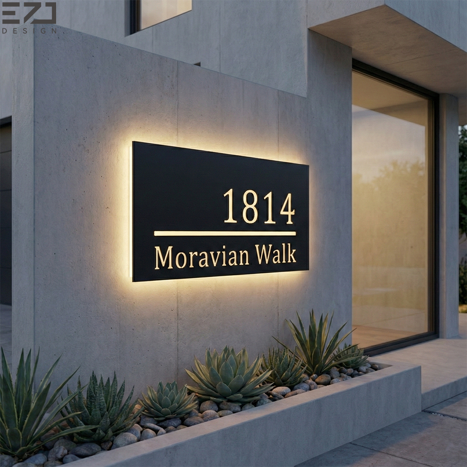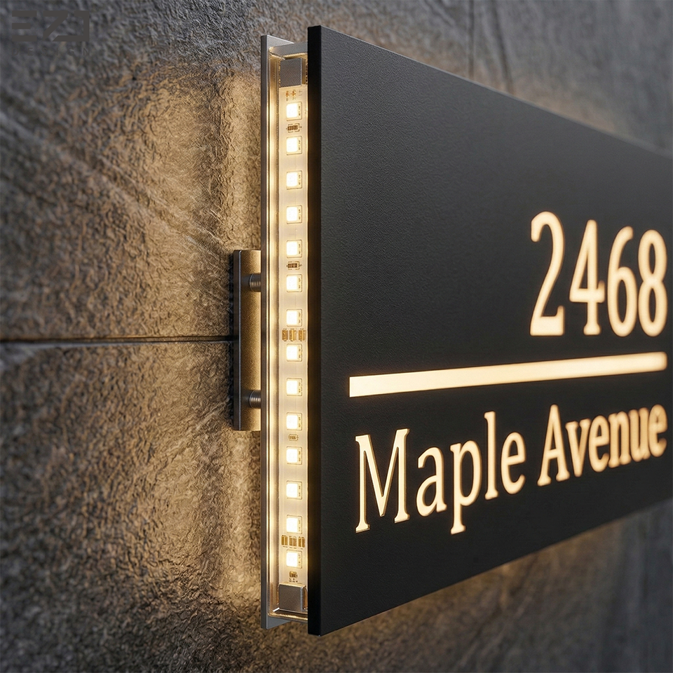 Insegna Personalizzata in Acciaio Inox con Retroilluminazione LED, Controllo Touch, Impermeabile IP65, Alimentazione AC per Dormitori e Residenze
