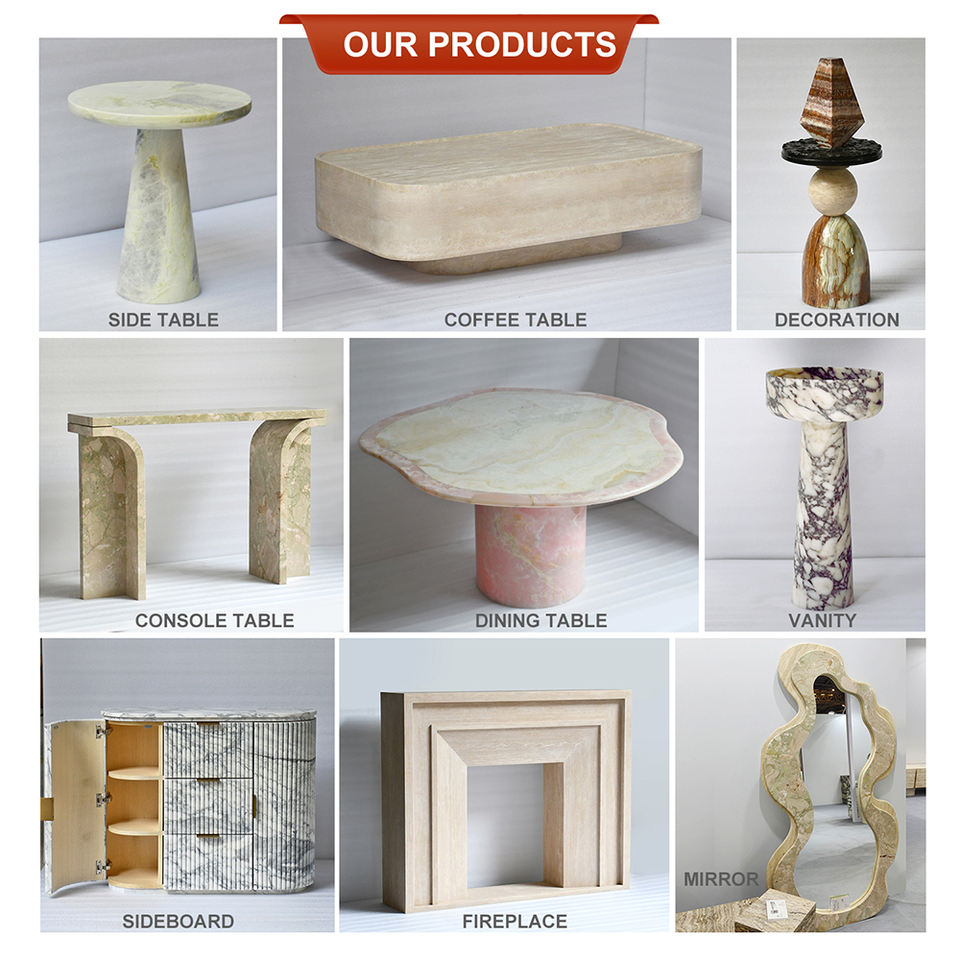 Tavolino da Caffè Moderno in Travertino Beige Personalizzato, Fatto a Mano, Durevole, per Arredamento Soggiorno