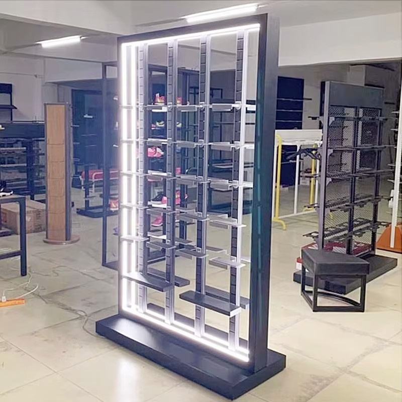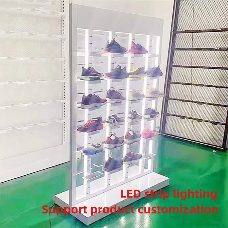 Custom Store Double face per bambini sport Casual da Tennis scarpe da ginnastica da uomo a LED striscia di luce in metallo Stand espositore