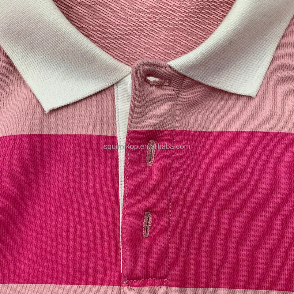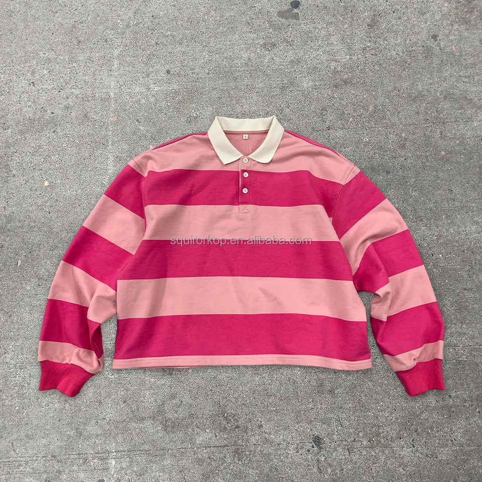 Custom Streetwear Color-Block Long Sleeve French Terry Cotton Stripe Printed Rugby Polo Shirt for Men