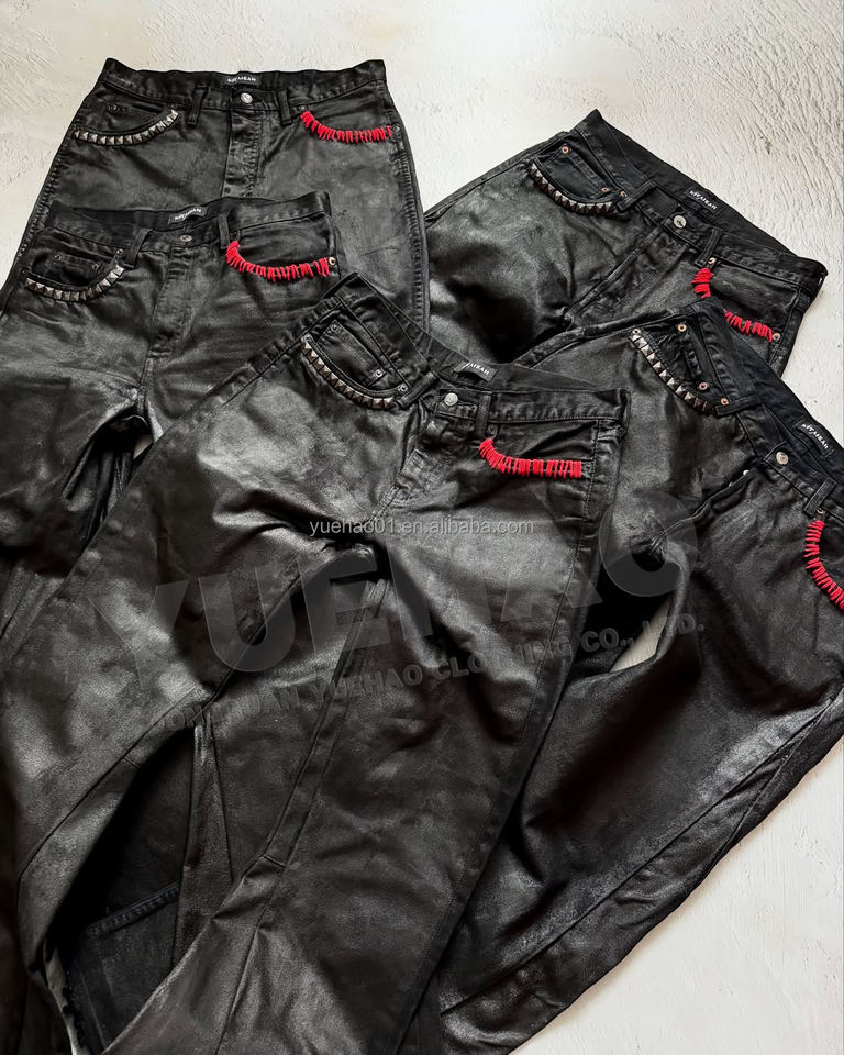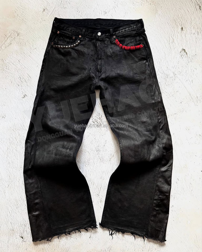 Custom Streetwear di alta qualità con fondo a campana a vita bassa borchiata oversize stivali da cera a gamba larga svasati pantaloni larghi in Denim di jeans per gli uomini