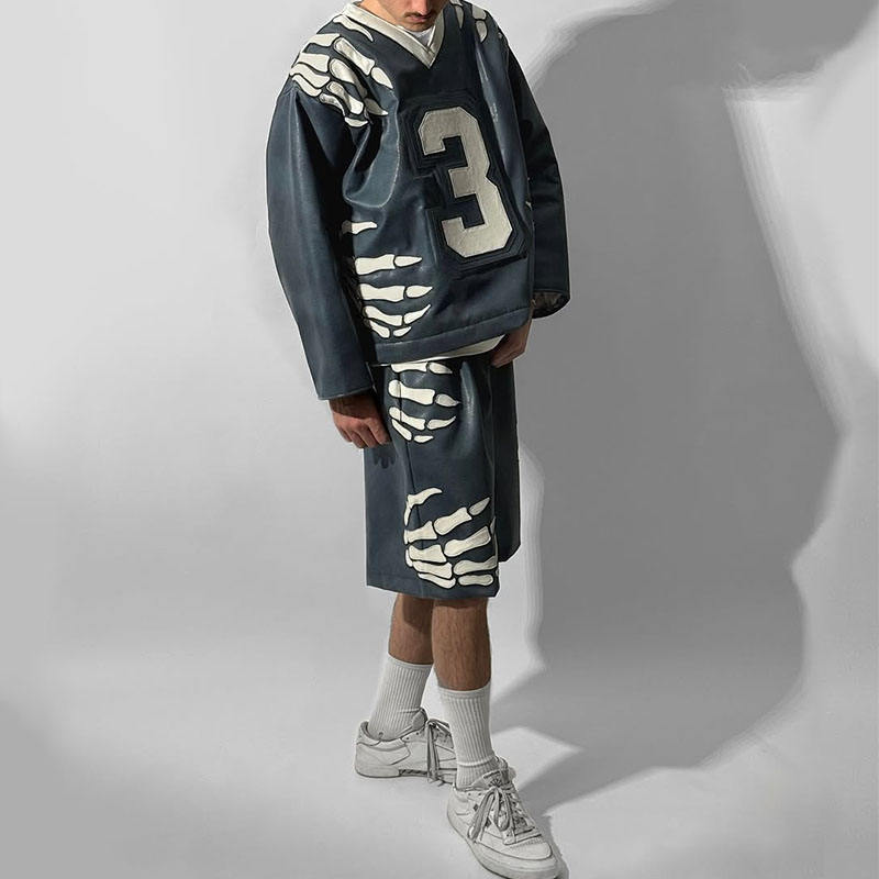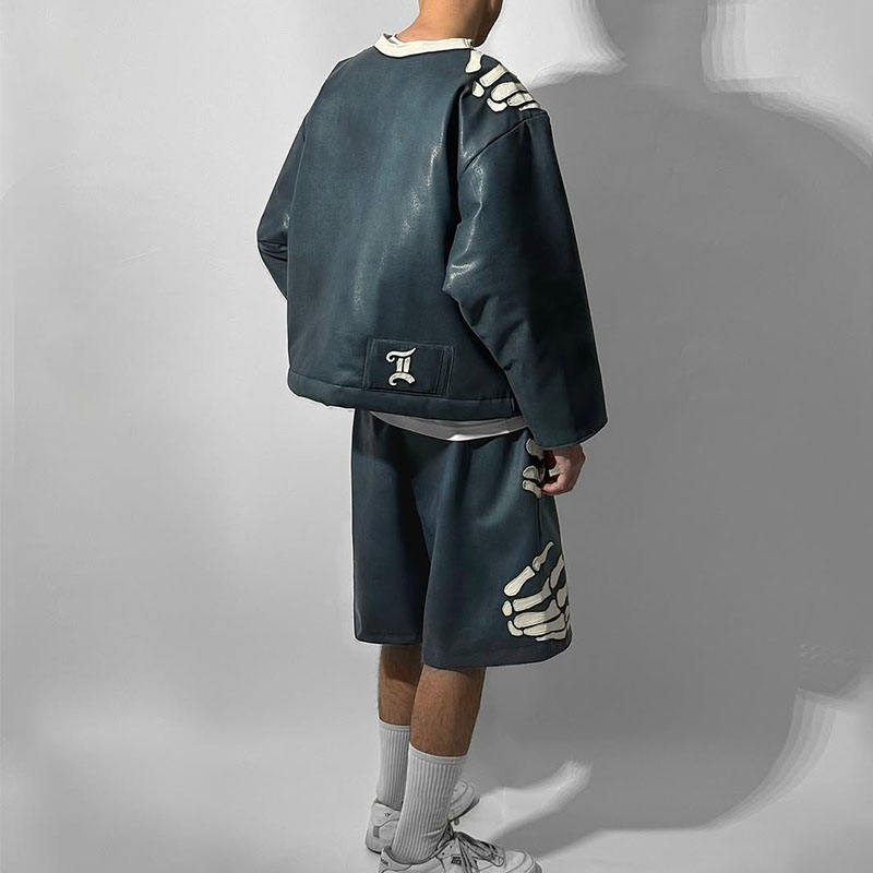 Shorts Streetwear personalizzati Set da uomo 2 pezzi Set di Shorts in pelle felpa e Shorts Set