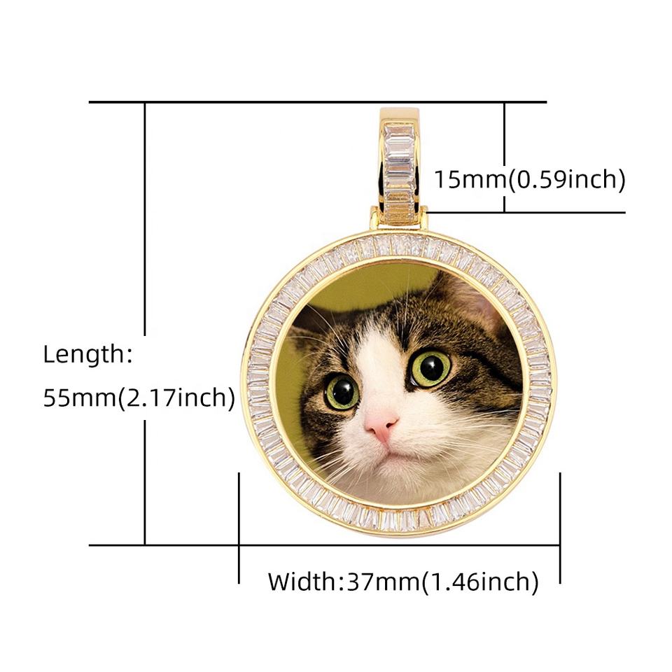 Custom Sublimation Photo Medallions Iced CZ Lab Created Geometric Blank Pendant Necklace Rope Chain Brass Gold Plated Cubic