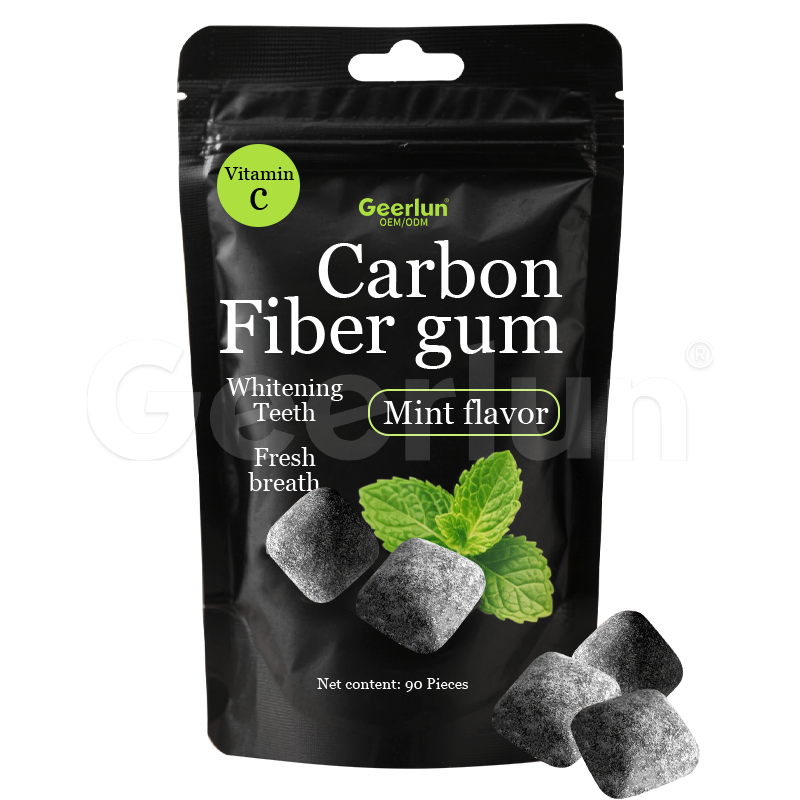Gomma da Masticare Personalizzata Senza Zucchero per lo Sbiancamento dei Denti con Vitamina C, Alito Fresco, Fibra di Carbonio e Rimineralizzante per la Salute Orale