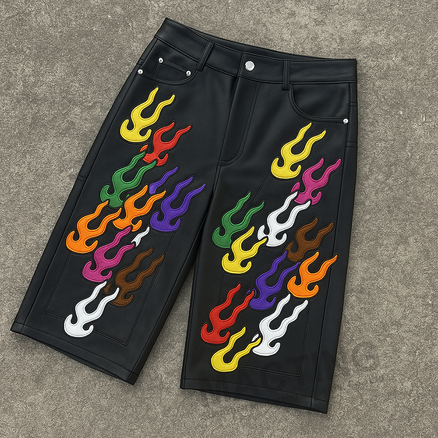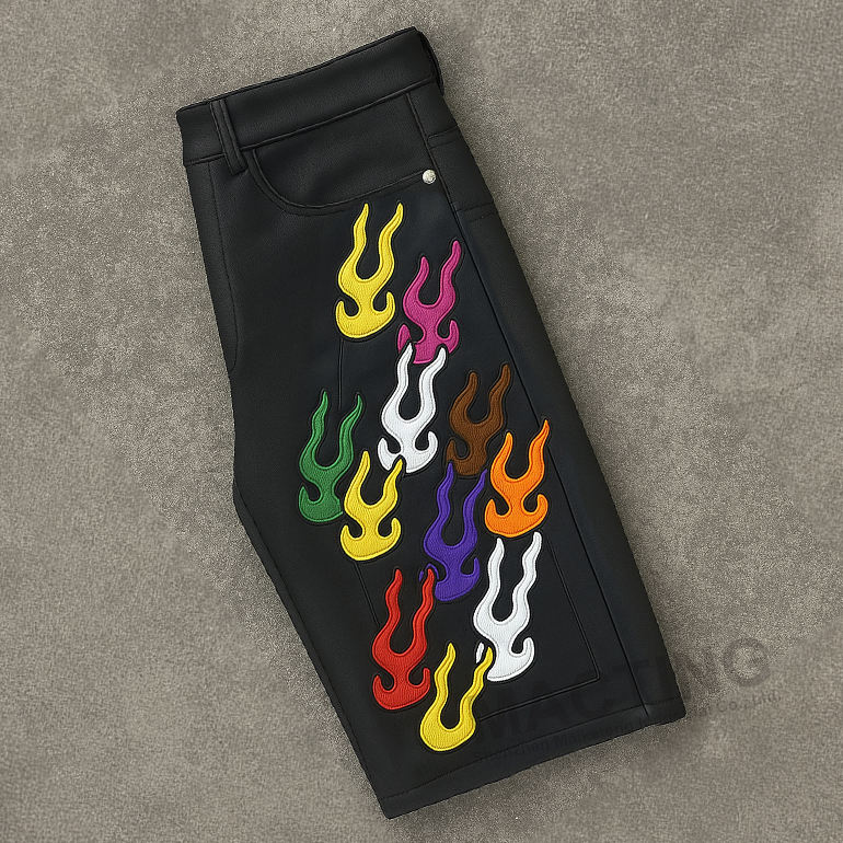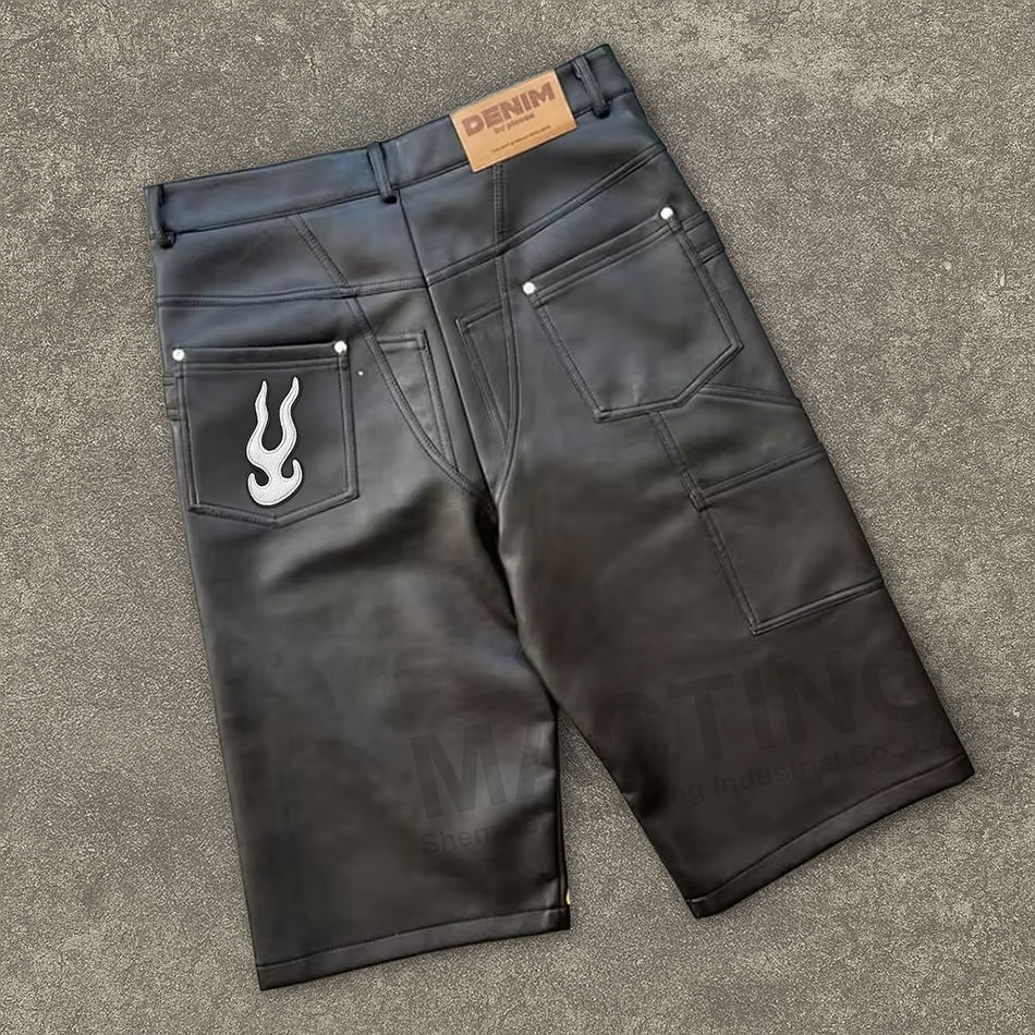 Shorts in pelle di alta qualità da uomo con strass Vintage Vintage con ricamo al ginocchio con ricamo personalizzato
