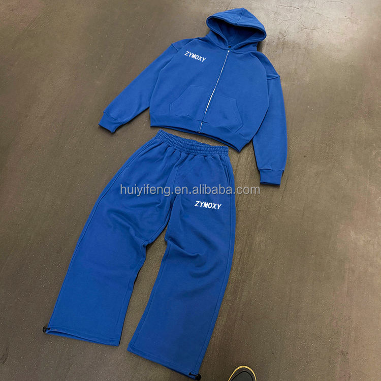 Tuta personalizzata da uomo felpe con Zip e pantaloni larghi della tuta due pezzi di colore grigio Jogger Set di tuta pesante oversize produttore di tuta