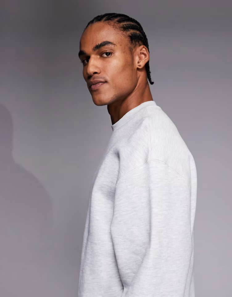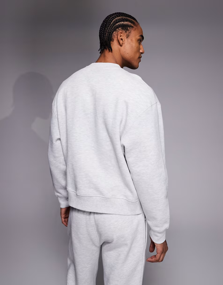Custom Sweatshirt Manufacturer Cropped Men's Sweater Heavyweight 440gsm Cotton Oversized Boxy Sweatshirt in Light Heather Gray