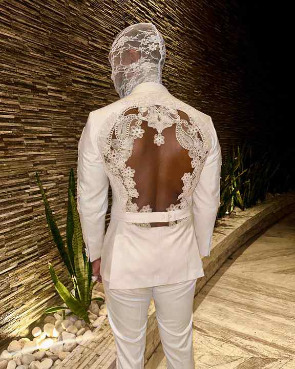 Abito Bianco su Misura con Apertura Posteriore per Uomo, Smoking di Lusso per Cerimonie, Matrimoni e Feste con Dettagli in Pizzo