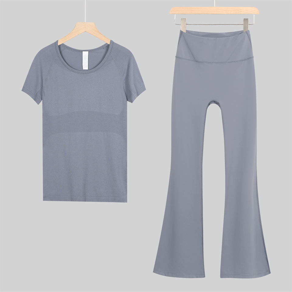 Set sportivo da donna con tecnologia personalizzata e traspirante per il Fitness t-shirt pantaloni a zampa di mare in tinta unita per lo Yoga e lo Yoga