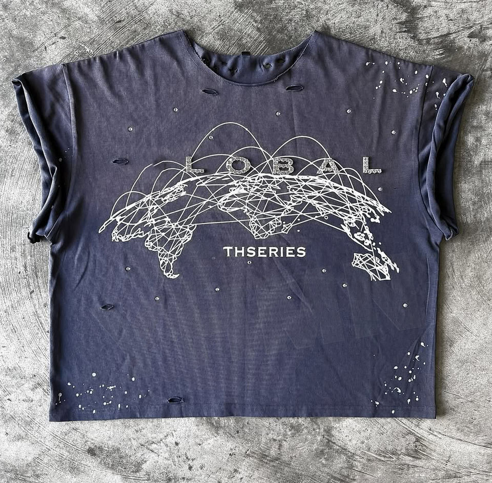 T-Shirt personalizzata con stampa di pittura a t-Shirt con strass a manica corta smussata sbiadita