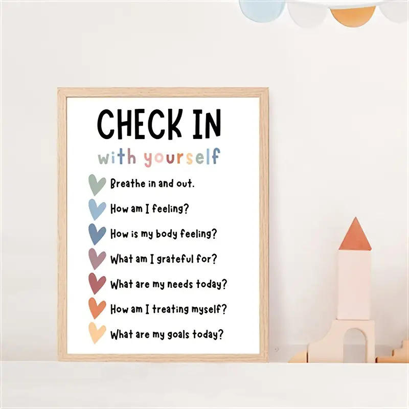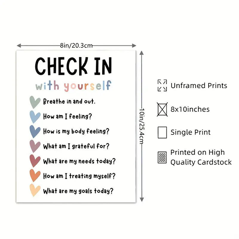 Custom Therapy Office Decor Mental Health Check in Daily Checklist Paper Card Feelings Check in With Yourself Poster