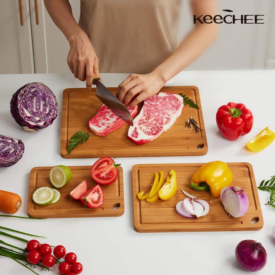 Set di tagliere di bambù in legno spesso personalizzato per la cucina di casa per tagliare il cibo, la Pizza include comodi salumi in scatola