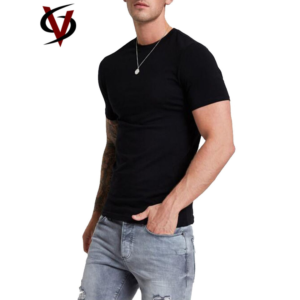 Custom Tight Fit T-shirt 100% Cotton Crew Neck Short Sleeve Slim Fit Men's T Shirt in Black