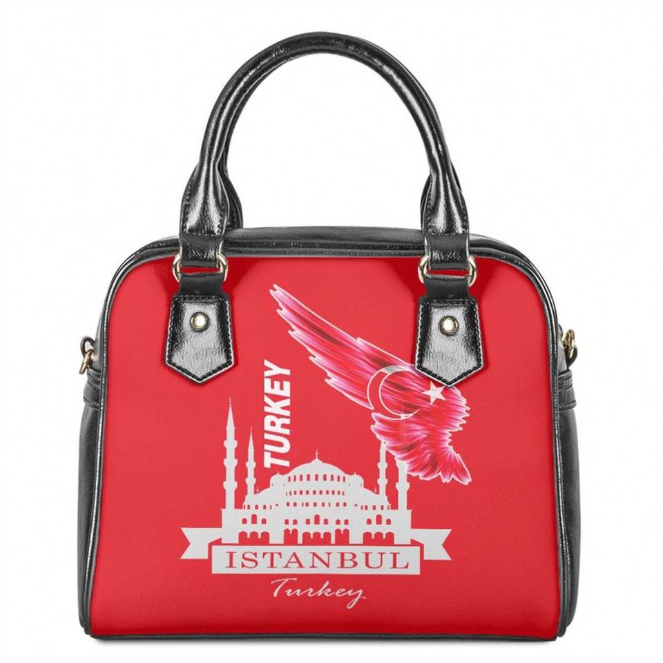 Custom Tote Bag Sublimation Turkey Flag Moon and Star Istanbul Letters Pattern Print Crossbody Leather Bag Women Casual Tote