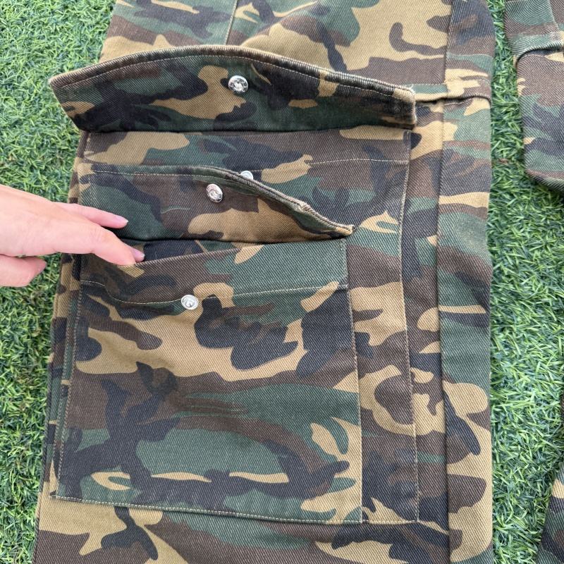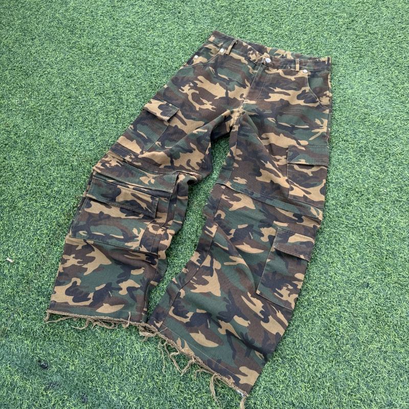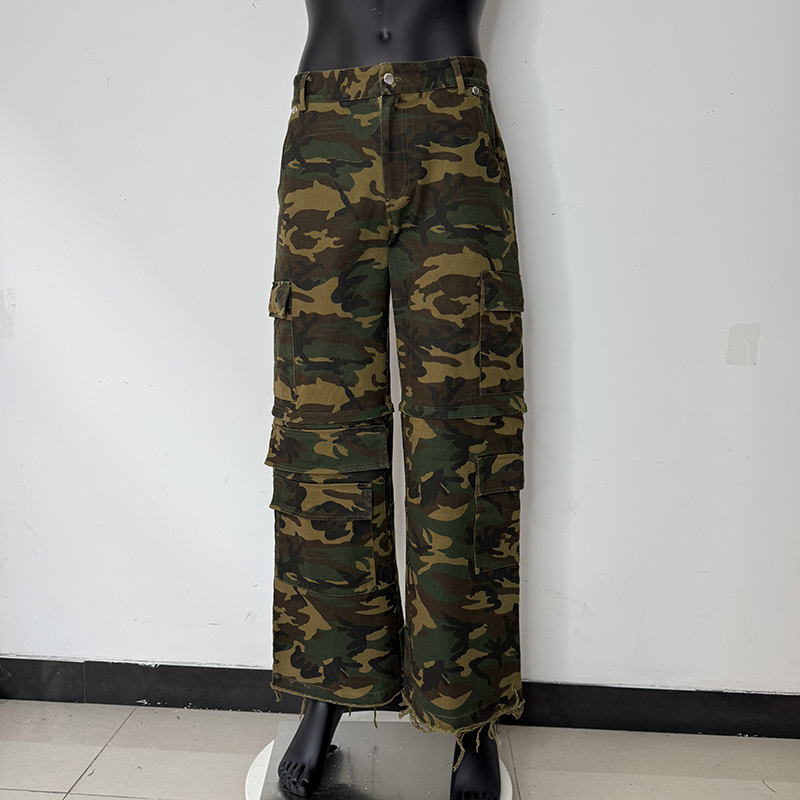 Pantaloni Cargo da Uomo Personalizzati di Alta Qualità Stile Streetwear Camouflage con Tasche da Carpentiere a Gamba Larga Baggy in Denim Effetto Vissuto