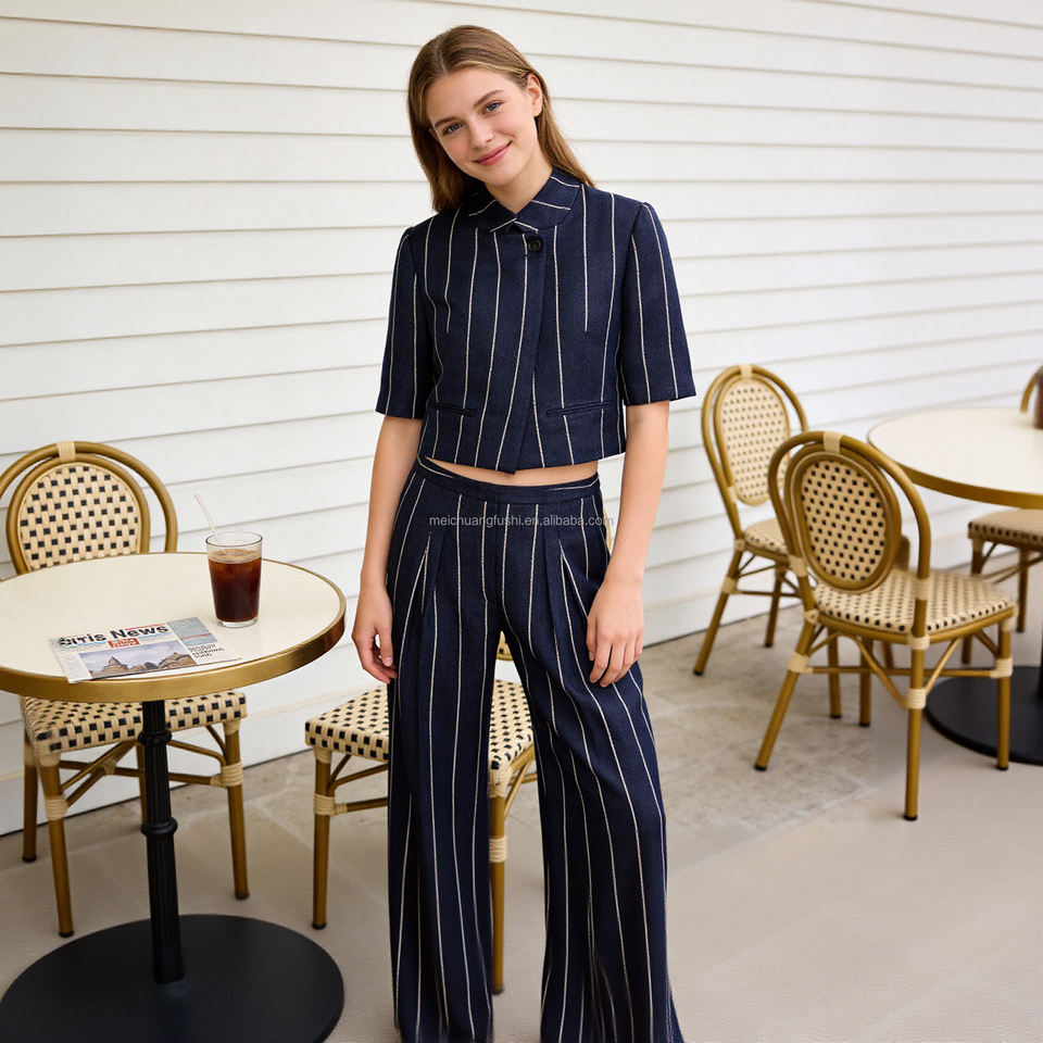 Completo Due Pezzi Personalizzato con Righe Verticali per Donna, Outfit da Ufficio per Signore