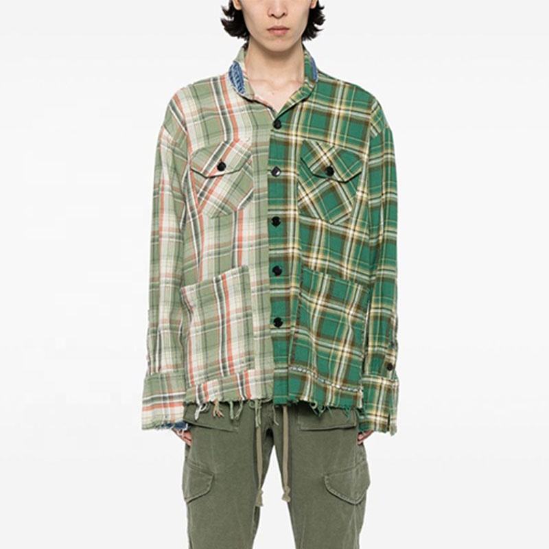 Camicia a quadri da uomo con Design a quadri in flanella a manica lunga bicolore personalizzata