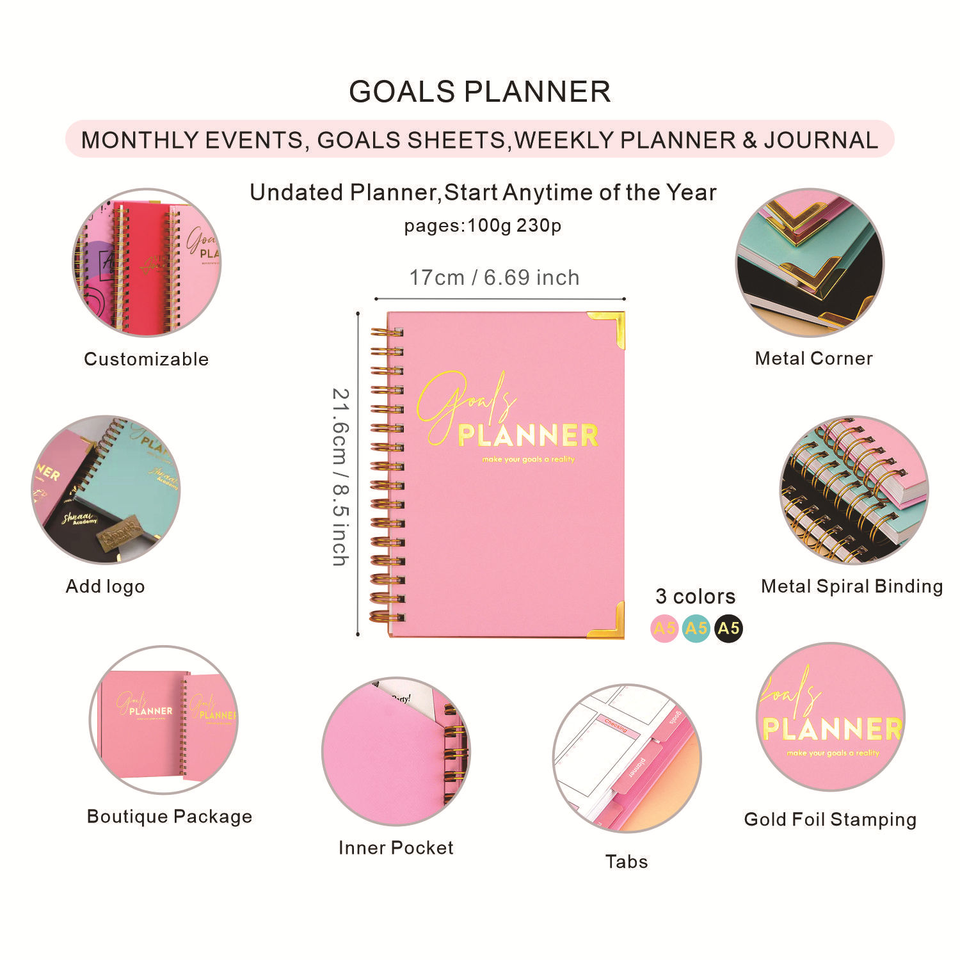 Nome del prodotto:Agenda giornaliera settimanale mensile A5 senza data