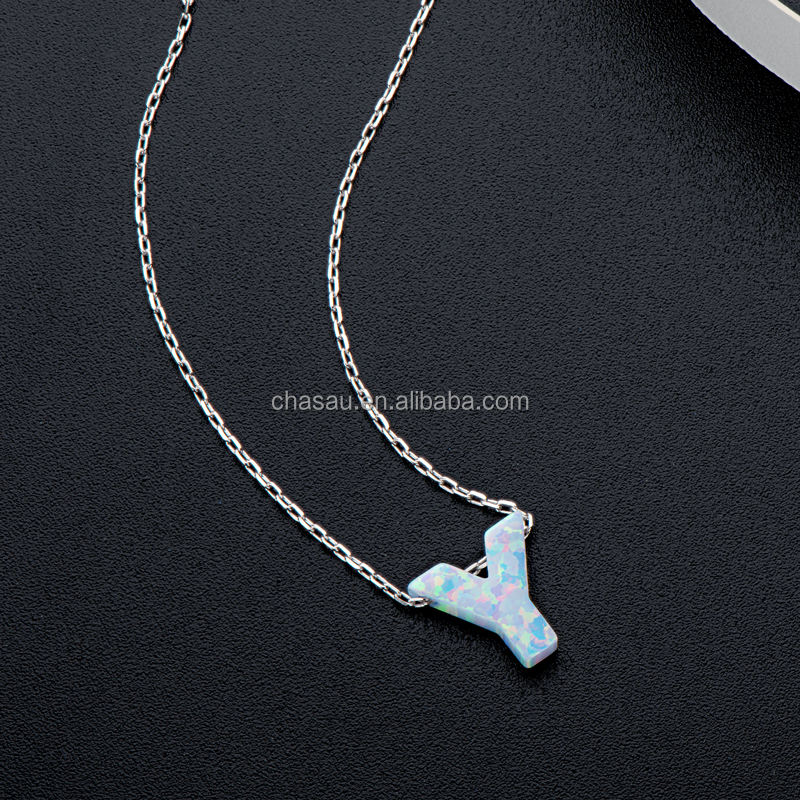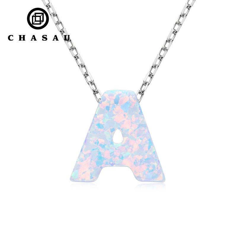 Collana con ciondolo in opale sintetico 925 unica personalizzata in argento Sterling 26 lettere B D E F G H I J fidanzamento festa di nozze