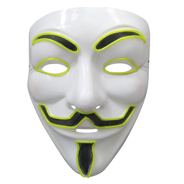 Mascherata in plastica a forma di V personalizzata maschera per feste a quattro colori Halloween Horror-Vendetta effetto luce fredda
