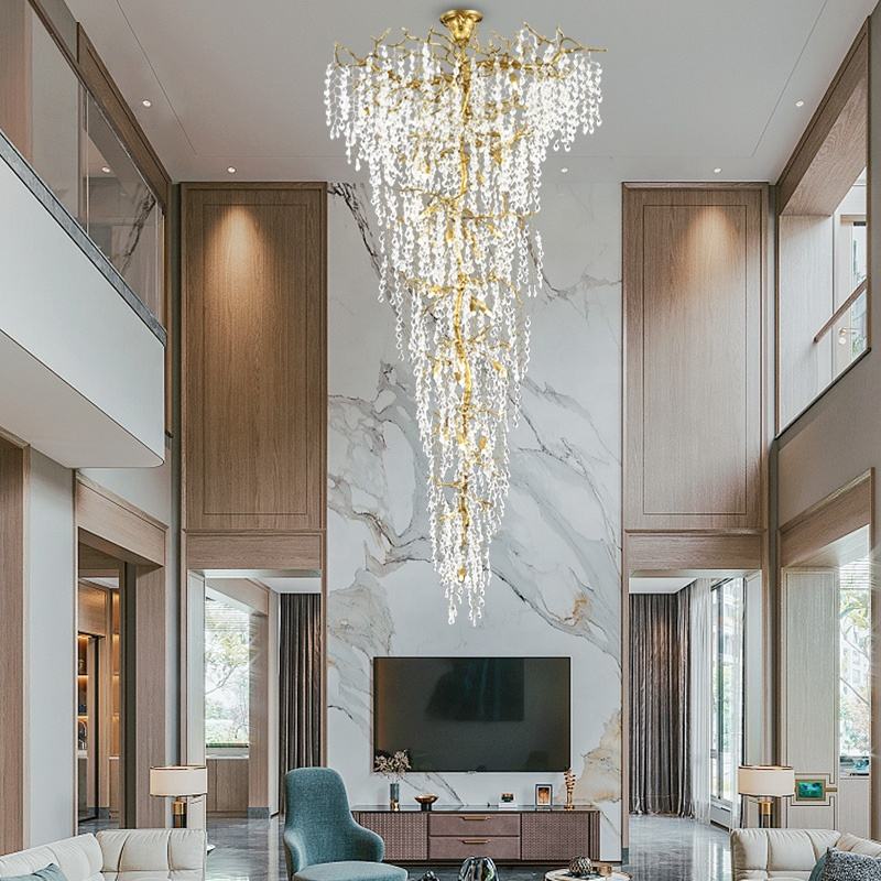 Custom Villa Duplex Staircase Chandelier Grape Grain Crystal Modern Light Luxury Long Chandelier Hotel Big Chandelier