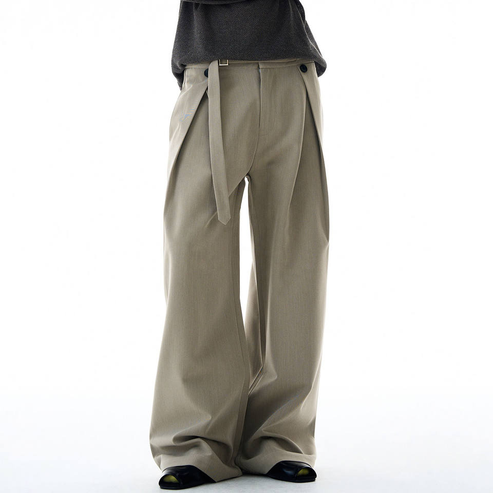 Pantaloni da Uomo Casual Larghi a Gamba Larga, Stile Vintage Anticato, con Pieghe e Cintura, Vestibilità Morbida a Trapezio
