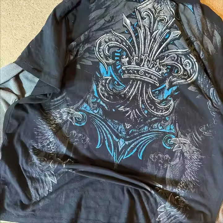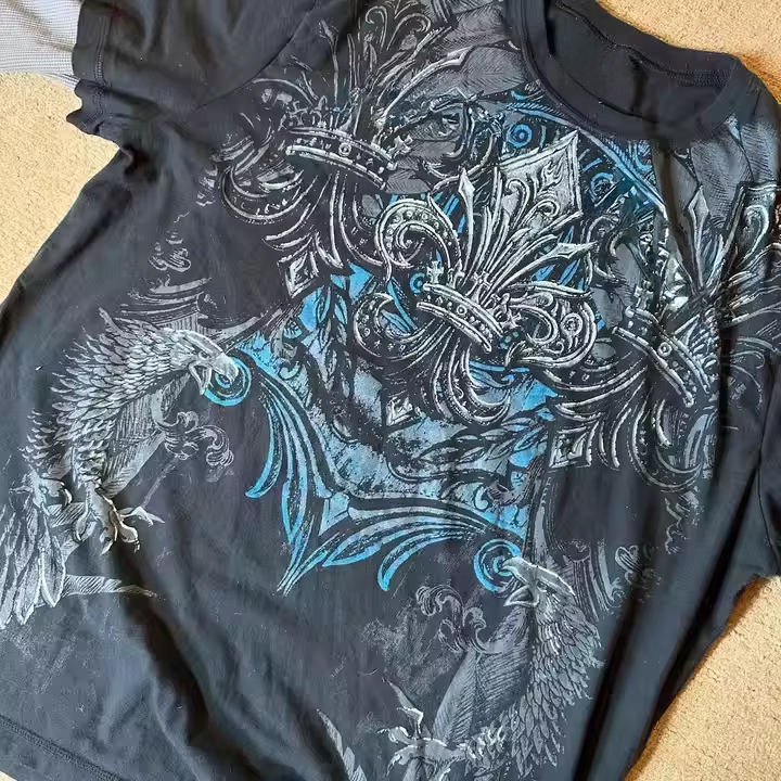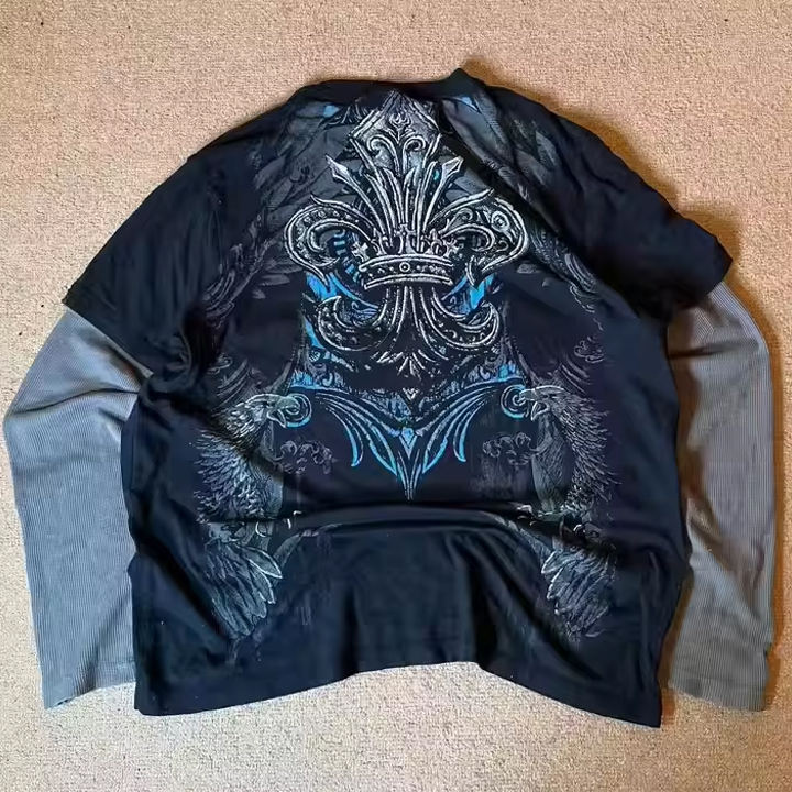 T-shirt da uomo in cotone Vintage personalizzato a doppio strato manica lunga oversize scritta in maglia traspirante digitale