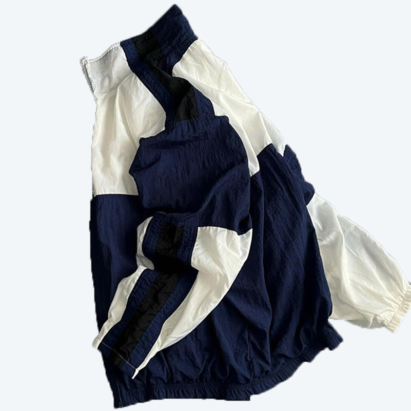 Custom Vintage Street Black and White Contrast Jacket Polyester Zipper Oversized Men's Windbreaker Jacket