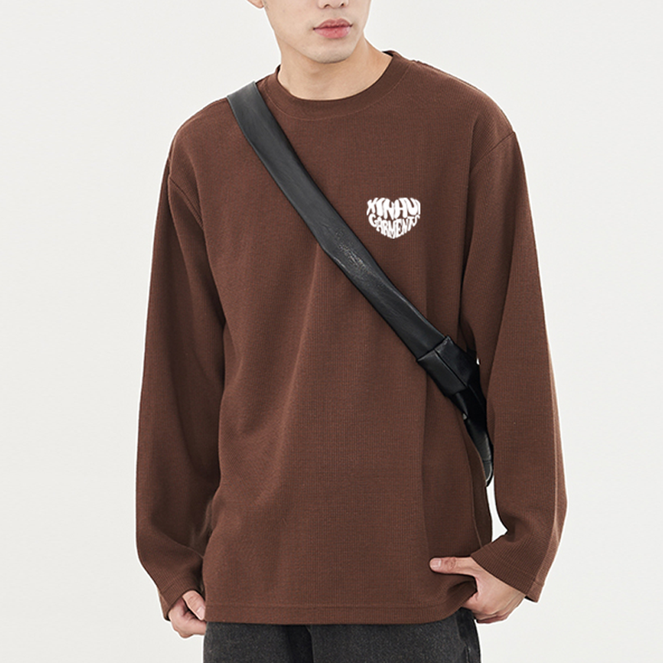 T-shirt termica da uomo a manica lunga in maglia Waffle personalizzata in cotone misto morbido in bianco solido da uomo con vestibilità regolare