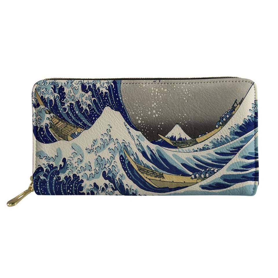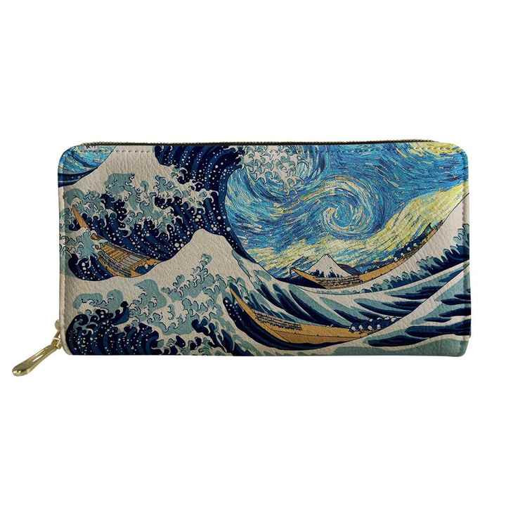 Portafoglio personalizzato da donna porta carte con cerniera stampa digitale borse di lusso onde blu portafoglio in vera pelle per uomo