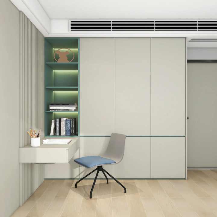 Armadio Personalizzato con Mensole Aperte e Scrivania Sospesa | Mobili per la Casa Moderni in Grigio Chiaro e Verde Menta