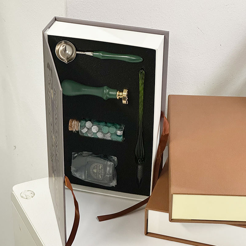 Pacchetto include:Cucchiaio di cera, timbro, perline, penna di vetro e calamaio